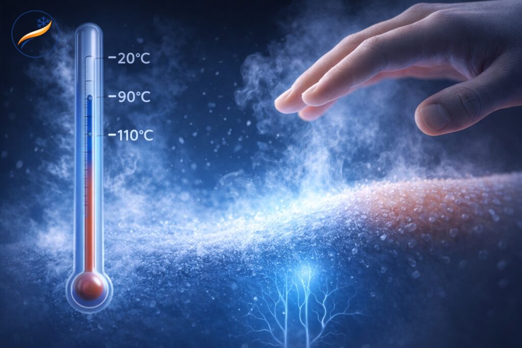 La cryothérapie corps entier est souvent associée à des températures extrêmes, parfois jusqu’à -110°C voire -140°C selon les centres.